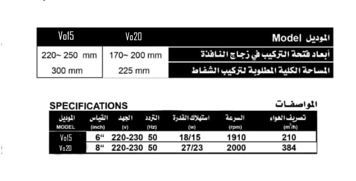 شفاط فالكو ١٥ سم زجاج فتحه تركيب ٢٠ سم